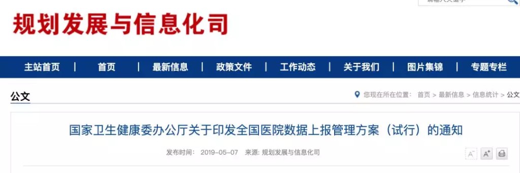 5月7日,国家卫生健康委员会官网挂出通知,向全国医院印发《全国医院数据上报管理方案(试行)》(下称《试行方案》),加强和规范全国医院数据报送管理。